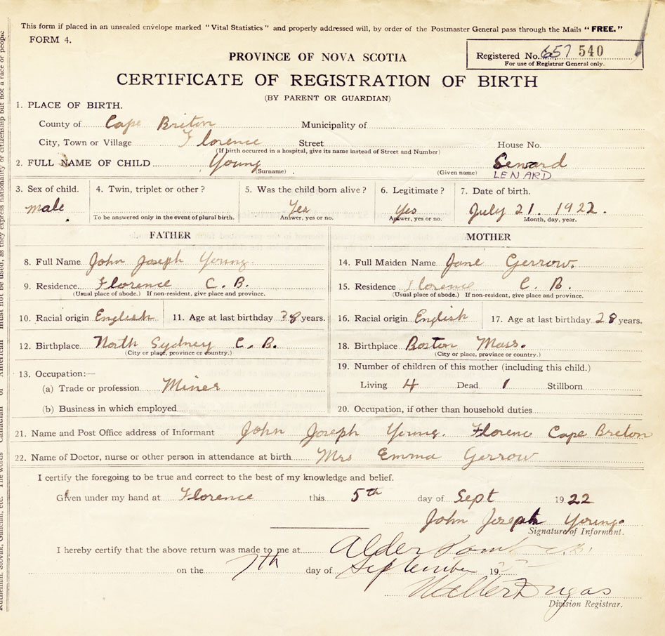 12. Birthplace North Sydney, Cape Breton