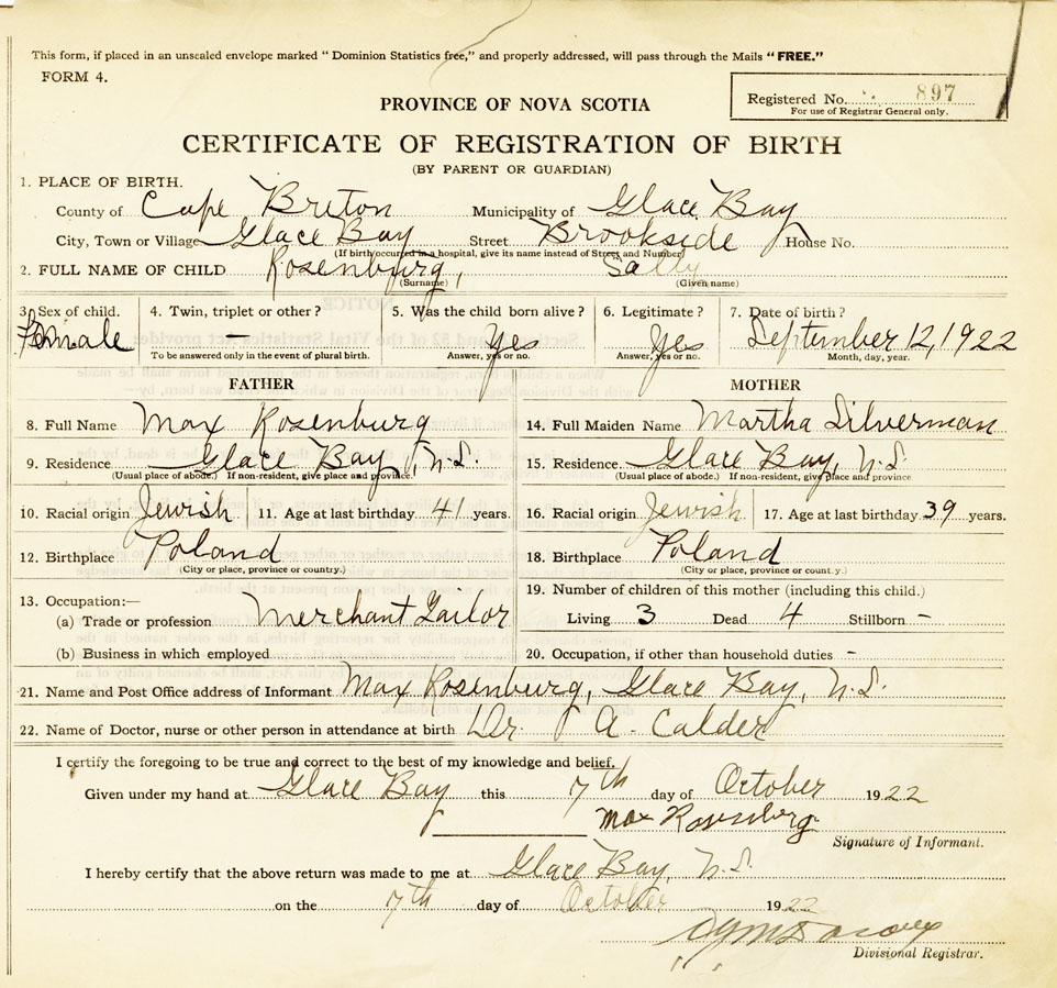 21. Name and Post Office address of Informant Max Rosenburg, Glace Bay