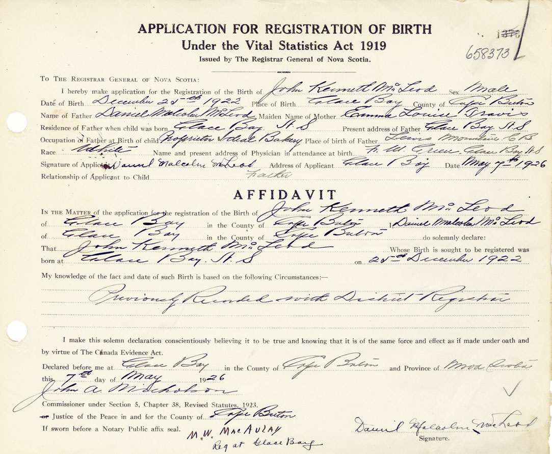 21. Name and Post Office address of Informant Daniel Malcolm McLeod Glace Bay, Cape Breton
