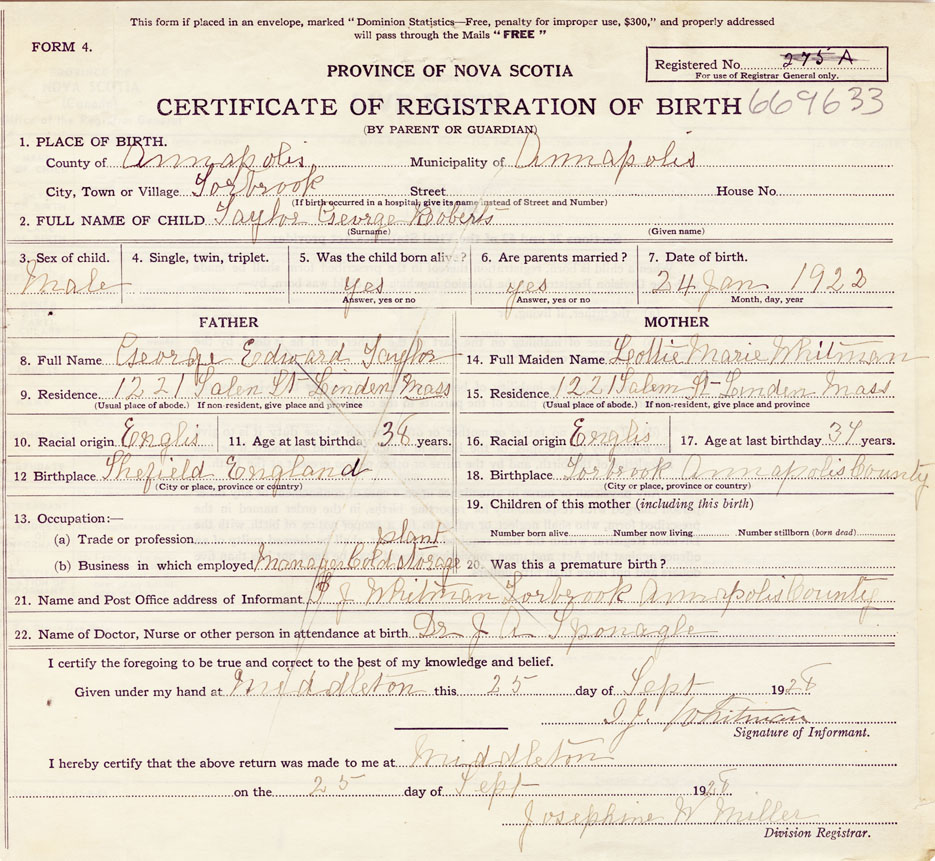 Birth Registration: Year: 1922 number: 66900633