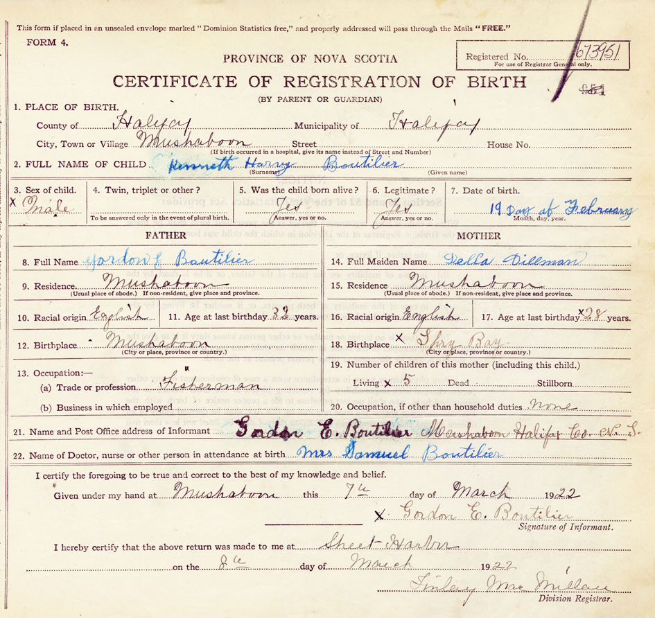 21. Name and Post Office address of Informant Gordon E. Boutilier Mushaboom, Halifax