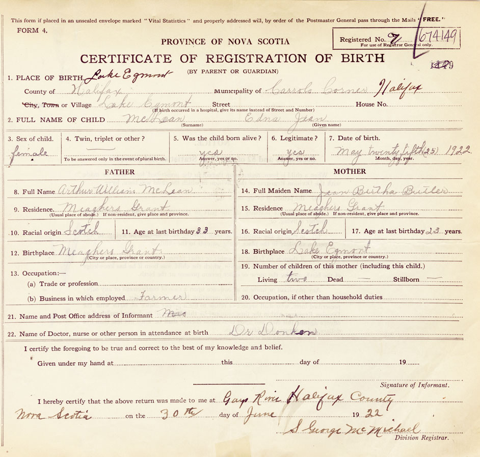 Nova Scotia Archives — https://archives.novascotia.ca/vital-statistics/birth/?ID=431046