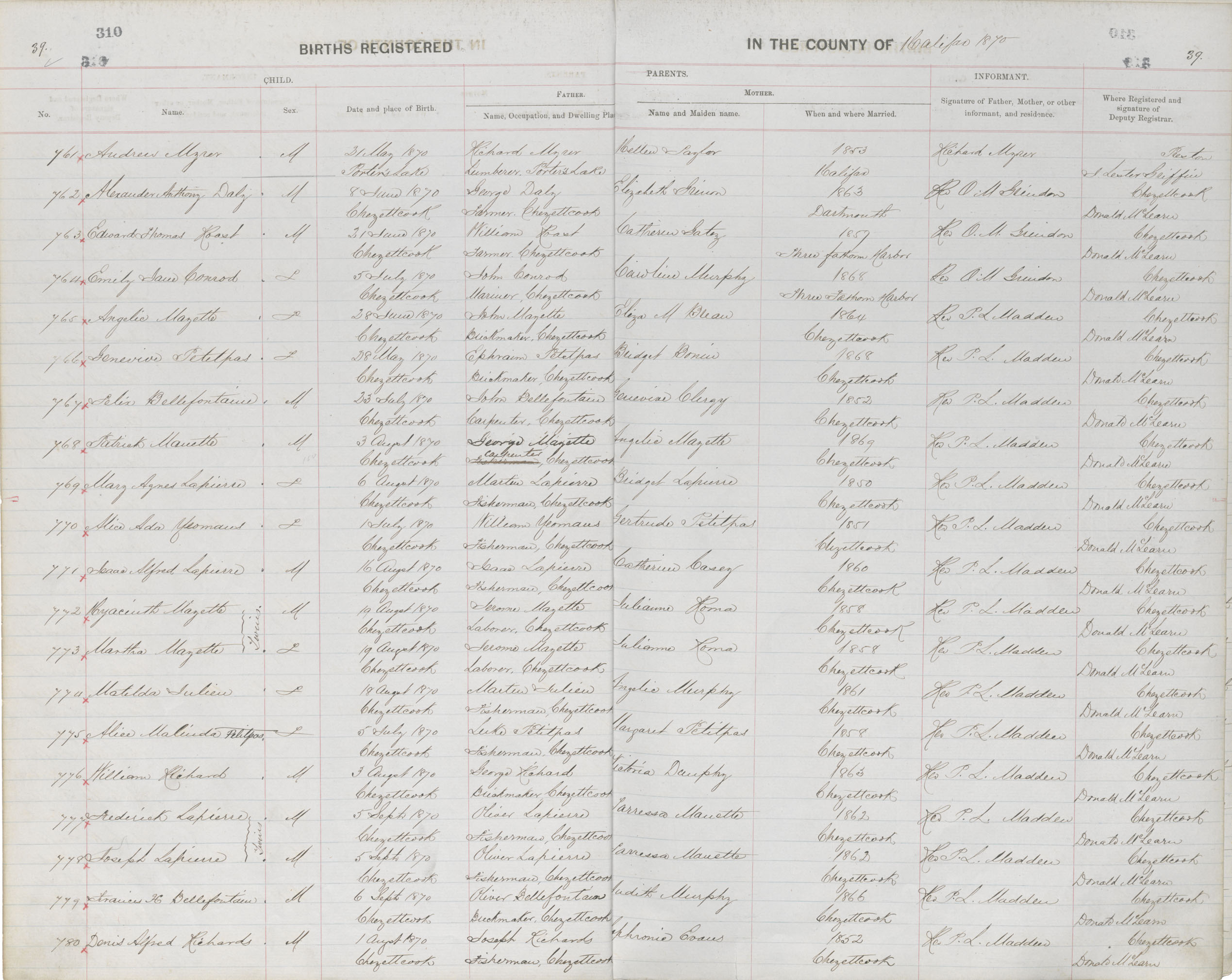 Birth Registration: Year: 1870 book: 1810 page: 39 number: 773