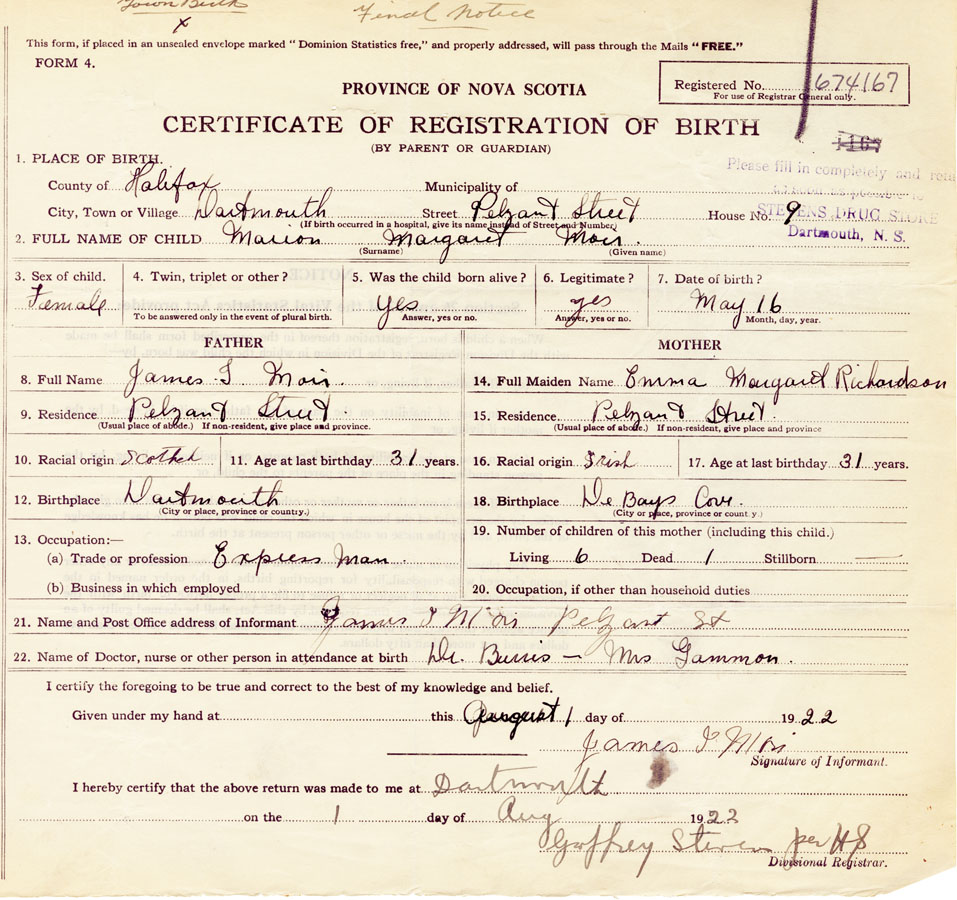 Nova Scotia Archives — https://archives.novascotia.ca/vital-statistics/birth/?ID=431064
