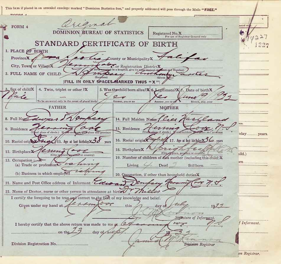 21. Name and Post Office address of Informant Edward Dempsey Herring Cove