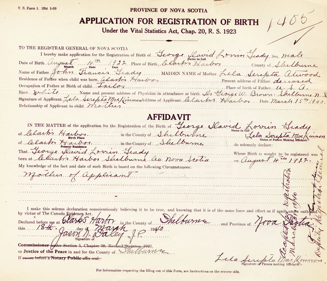 Date of Birth August 4, 1922 Place of Birth Clarks HarbourCounty of Shelburne