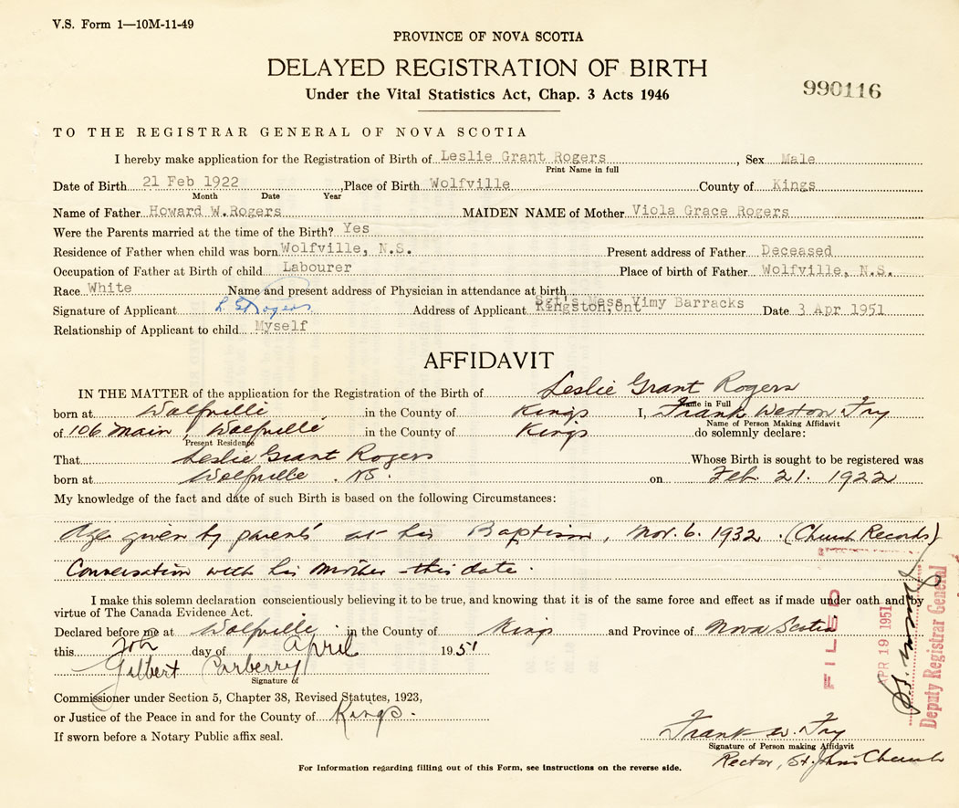 Signature of Applicant L. G. Rogers Address of Applicant Wolfville, Kings Date 3 April 1951
