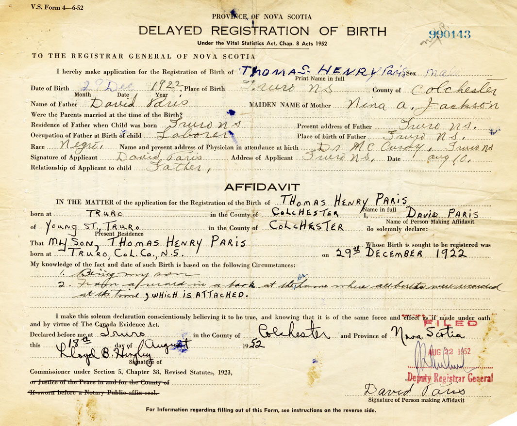 That Thomas HenryParis Whose Birth is sought to be registered was