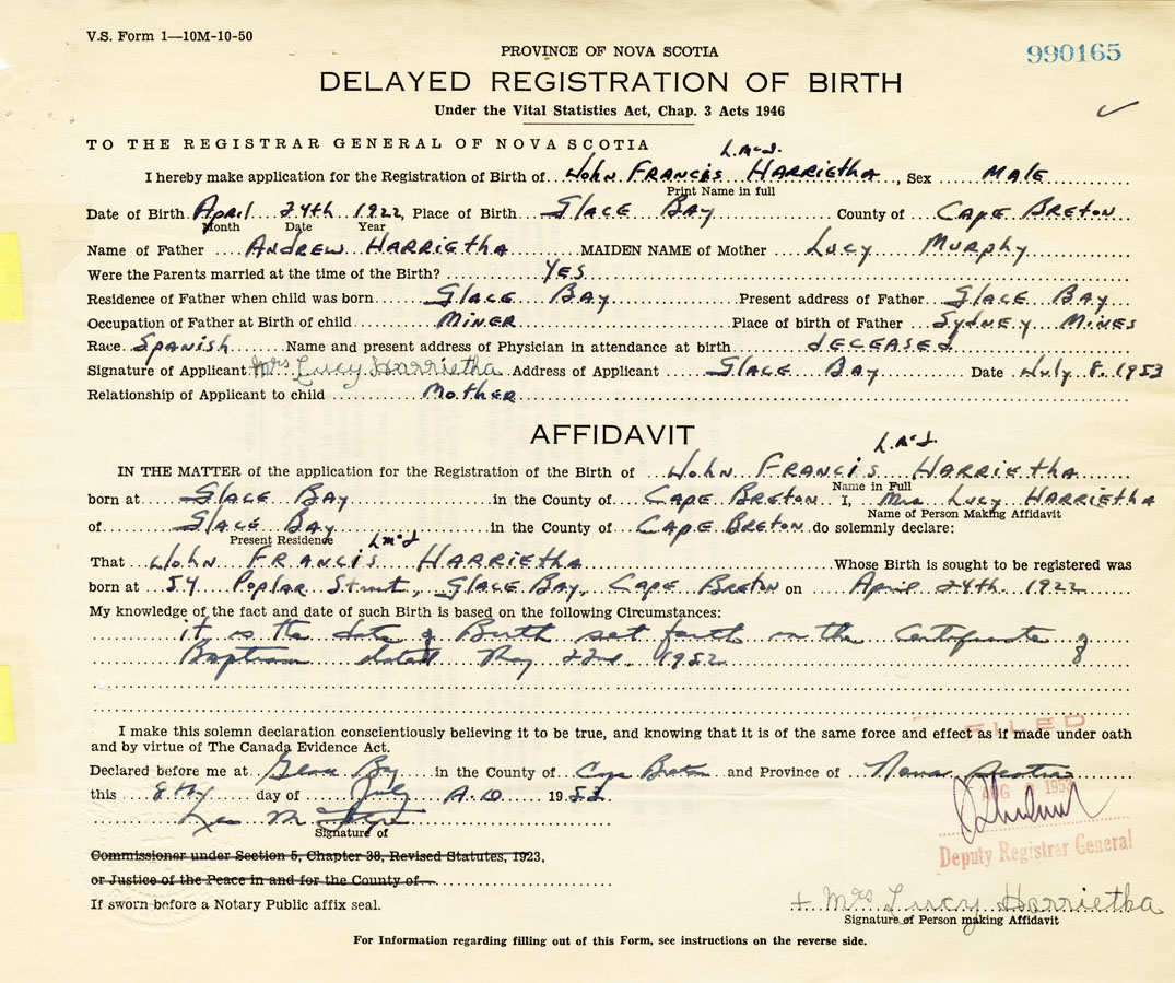 Date of Birth April 24, 1922 Place of Birth Glace BayCounty of Cape Breton