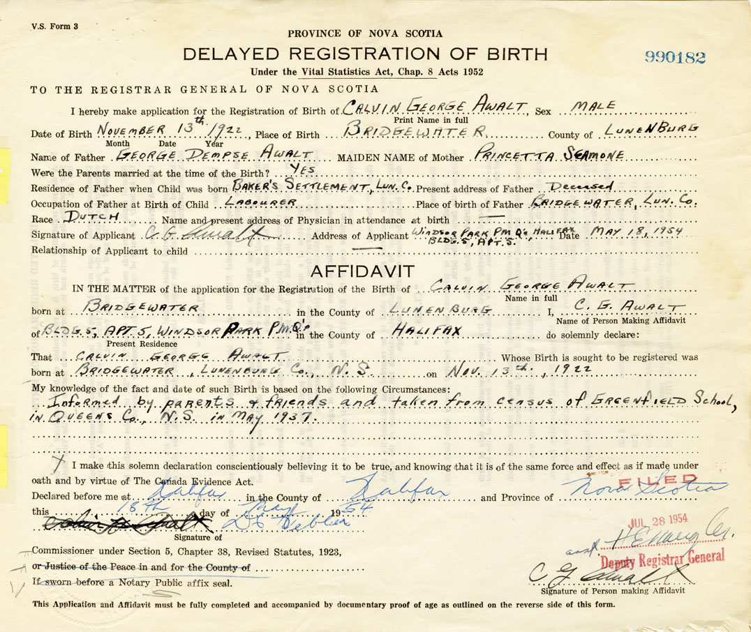 Date of Birth November 13, 1922 Place of Birth BridgewaterCounty of Lunenburg