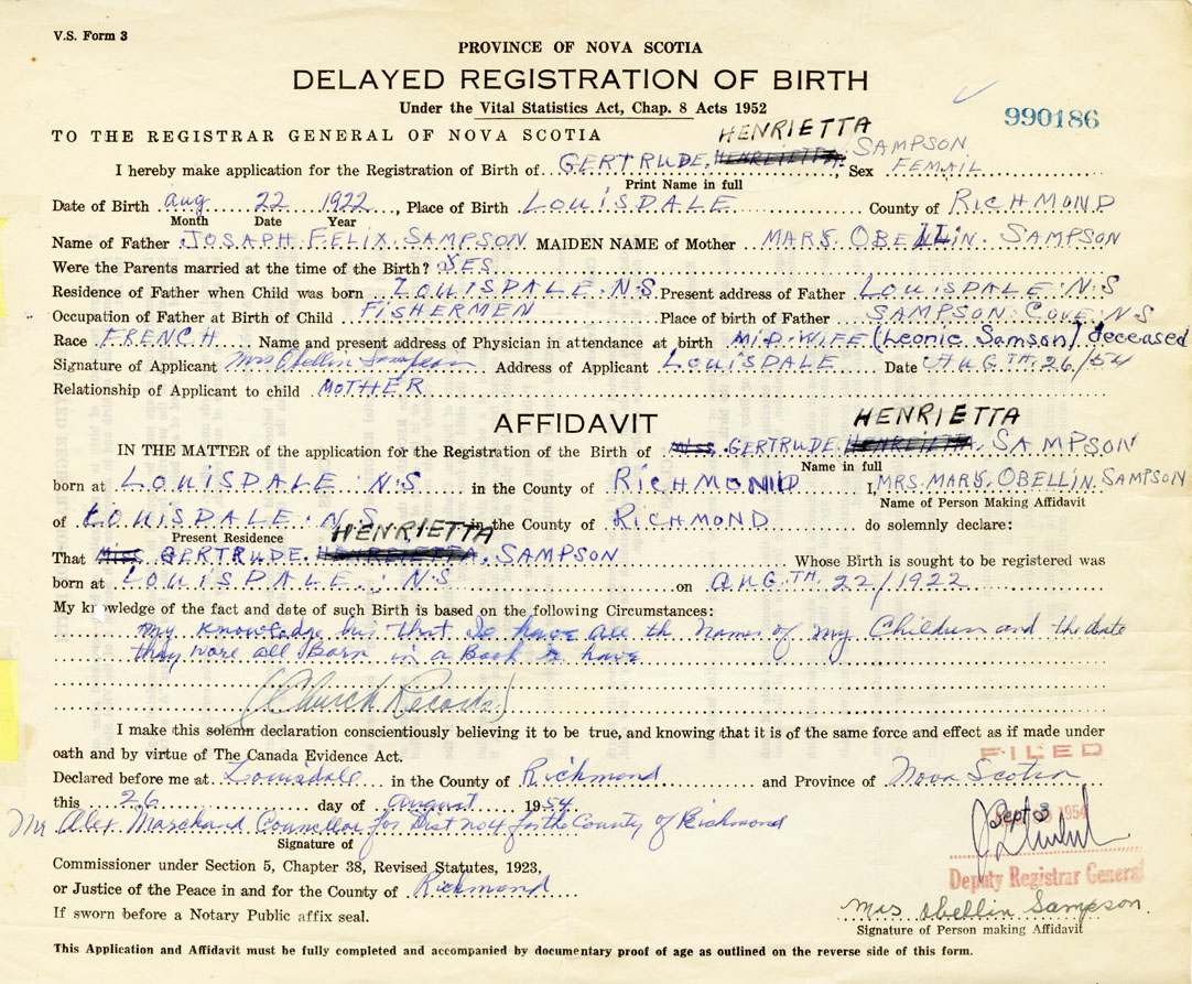 That Gertrude HenriettaSampson Whose Birth is sought to be registered was