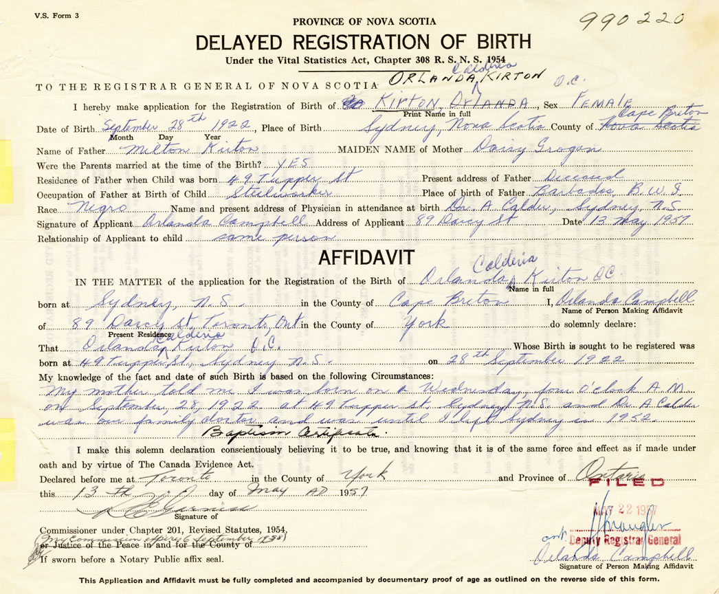 21. Name and Post Office address of Informant Orlanda Campbell 89 Darcy Street, Sydney, Cape Breton