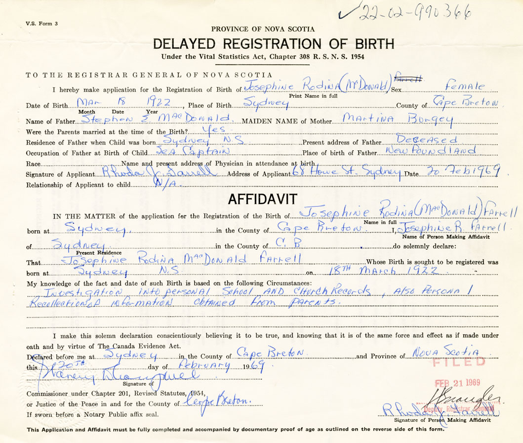 Date of Birth March 18, 1922 Place of Birth SydneyCounty of Cape Breton