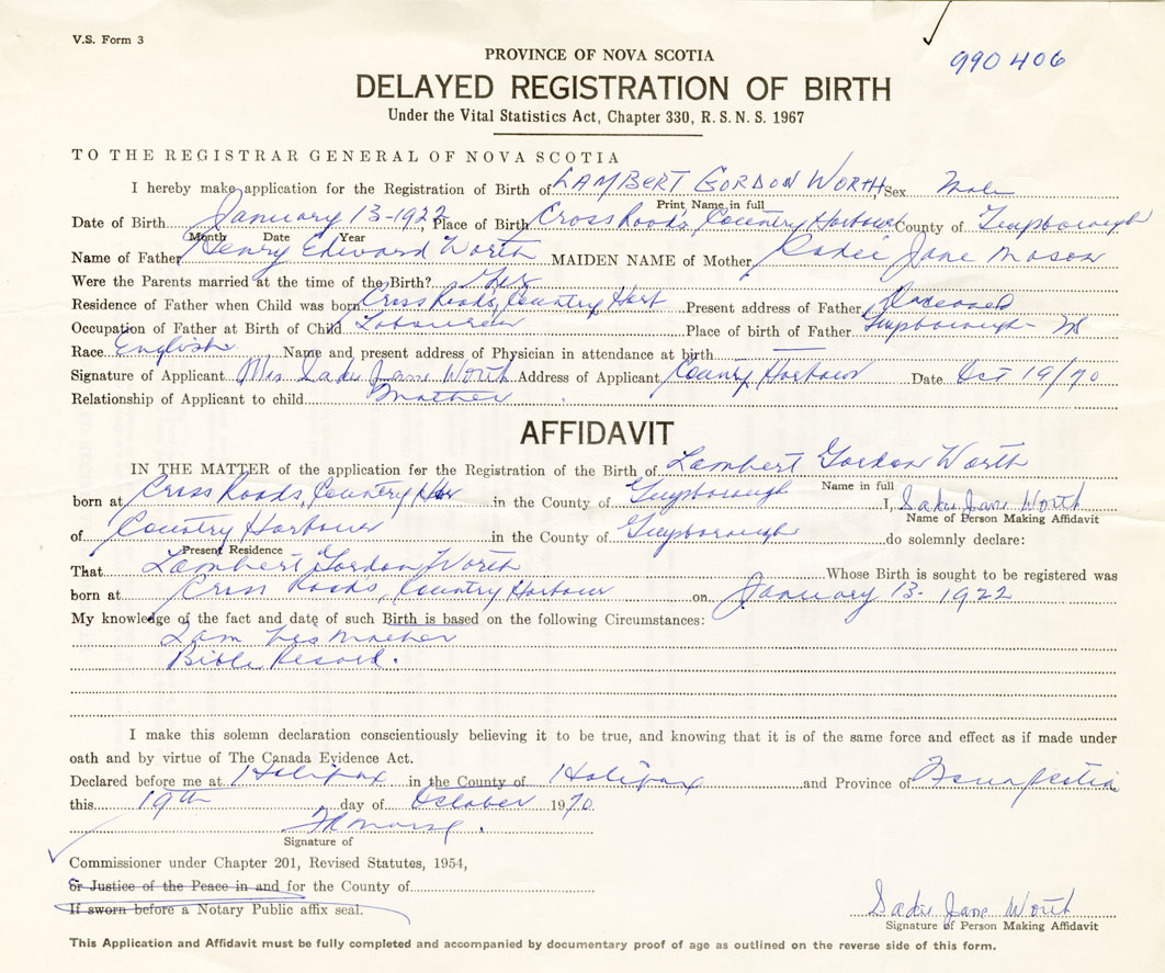 Date of Birth January 13, 1922 Place of Birth Country HarbourCounty of Guysborough