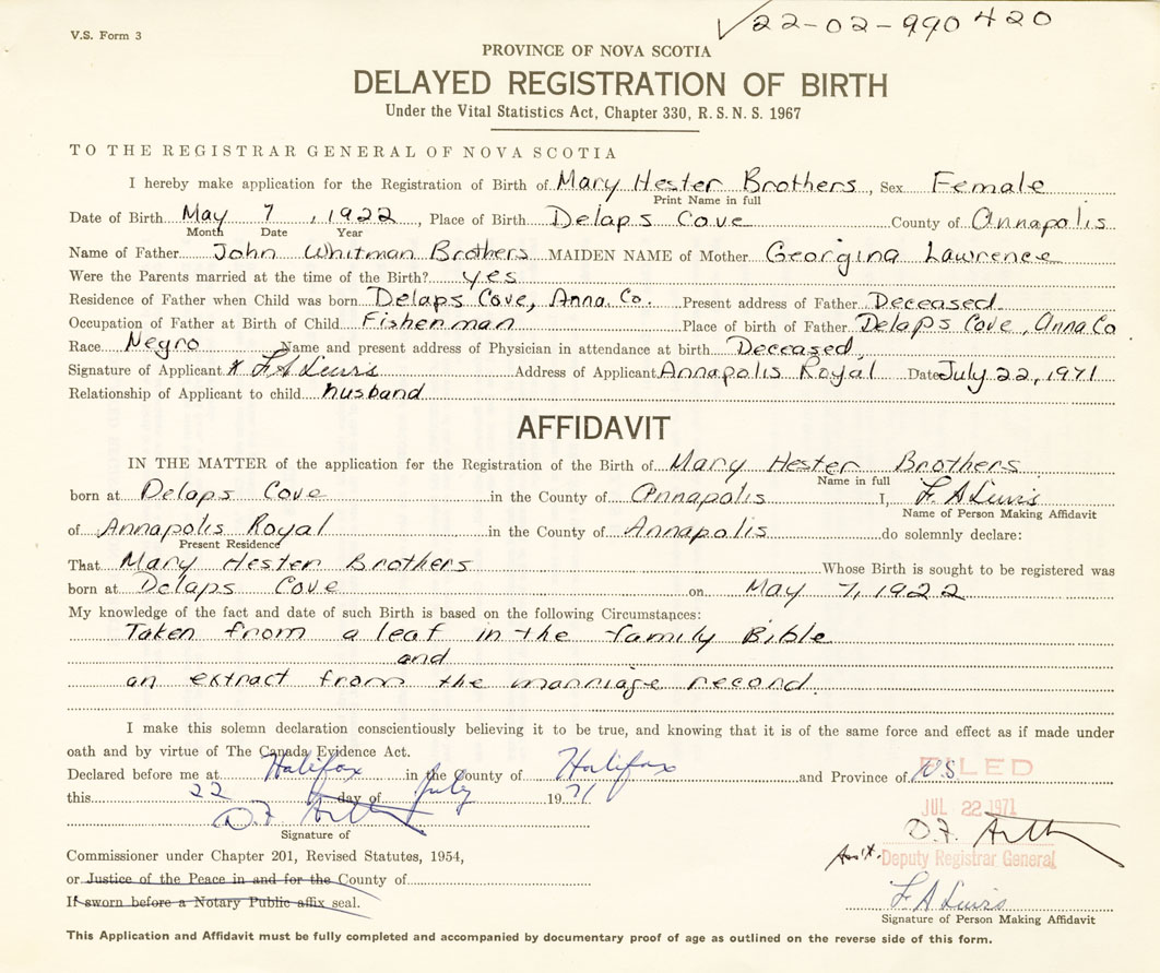 Date of Birth May 7, 1922 Place of Birth Delaps CoveCounty of Annapolis