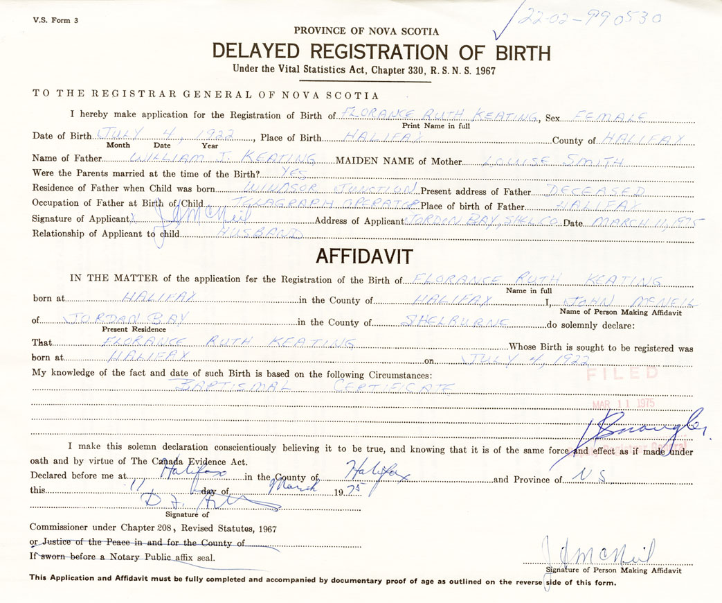IN THE MATTER of the application for the Registration of the Birth of Florence RuthKeating