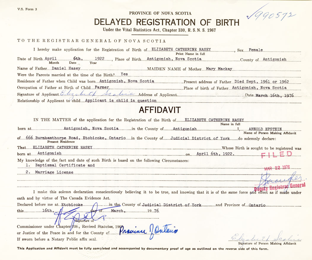 Date of Birth April 6, 1922 Place of Birth AntigonishCounty of Antigonish