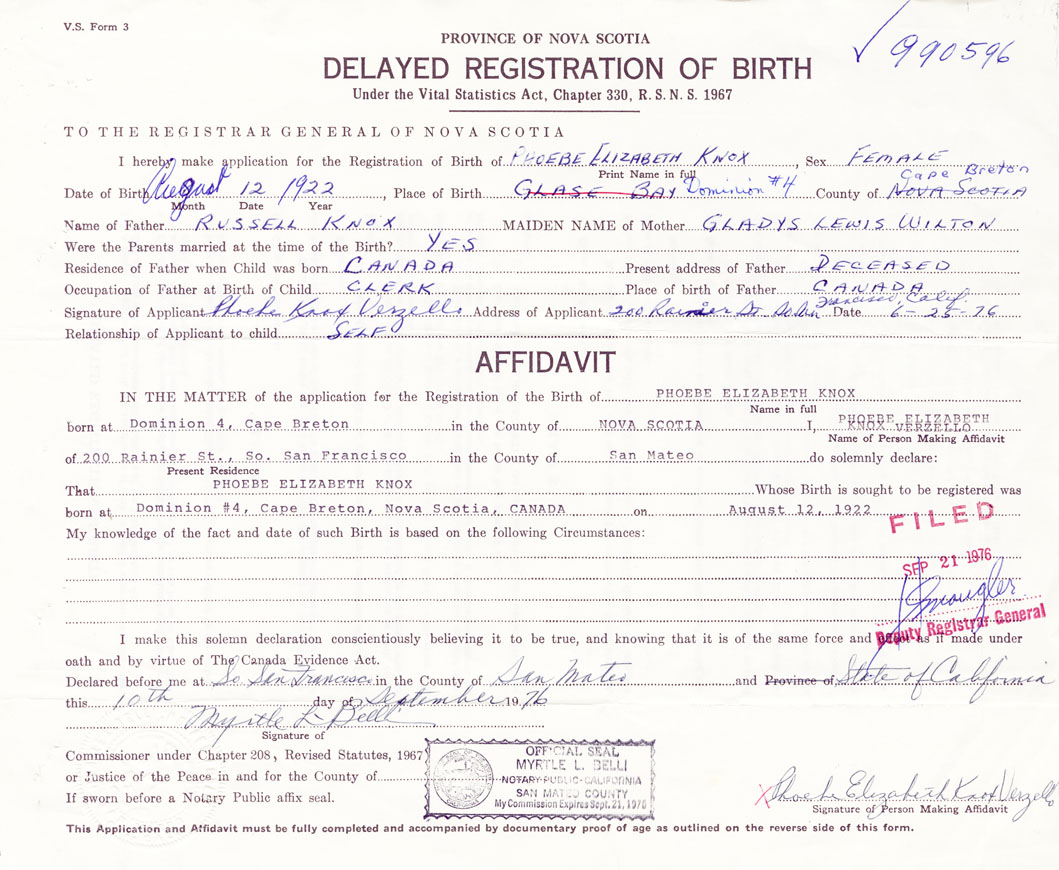 Date of Birth August 12, 1922 Place of Birth DominionCounty of Cape Breton