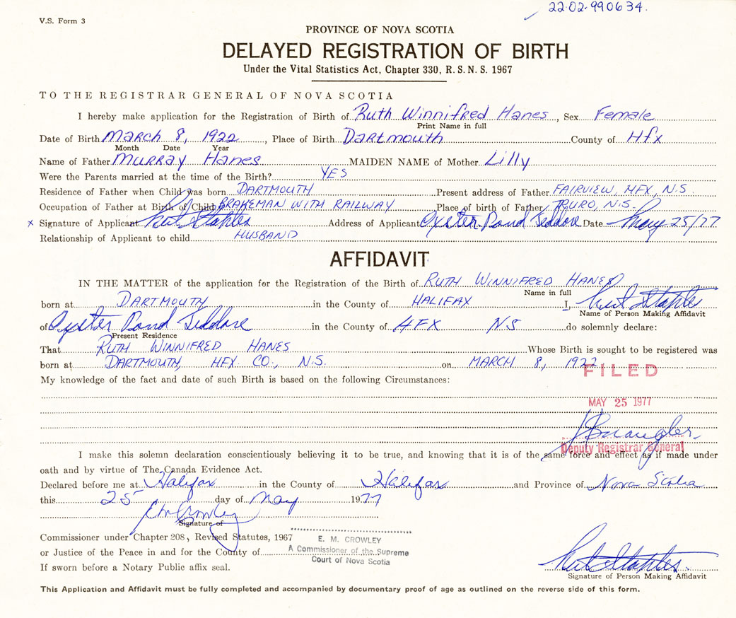 Date of Birth March 8, 1922 Place of Birth DartmouthCounty of Halifax