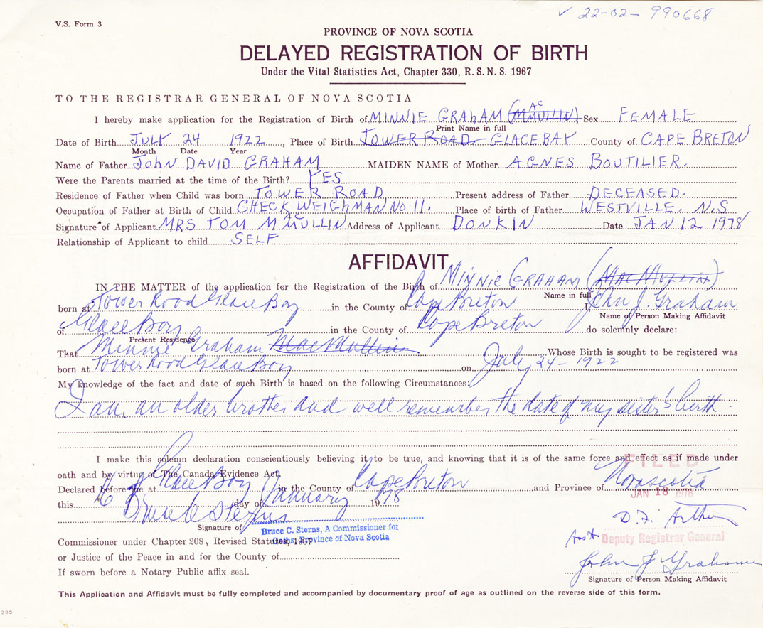 Name of Father John David Graham MAIDEN NAME of Mother Agnes Boutilier