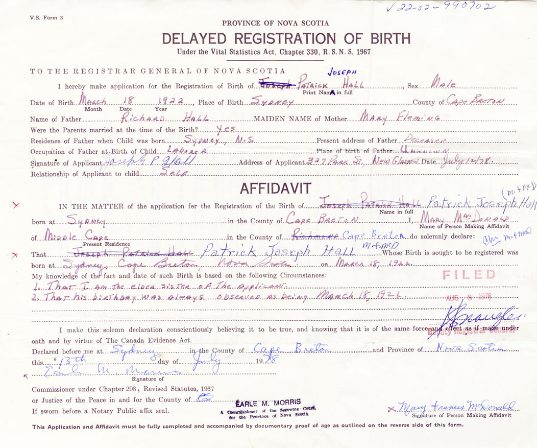 Date of Birth March 18, 1922 Place of Birth SydneyCounty of Cape Breton