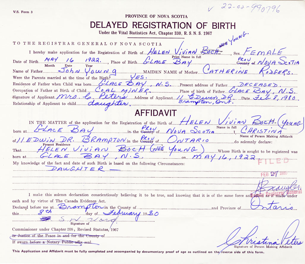 Date of Birth May 16, 1922 Place of Birth Glace BayCounty of Cape Breton