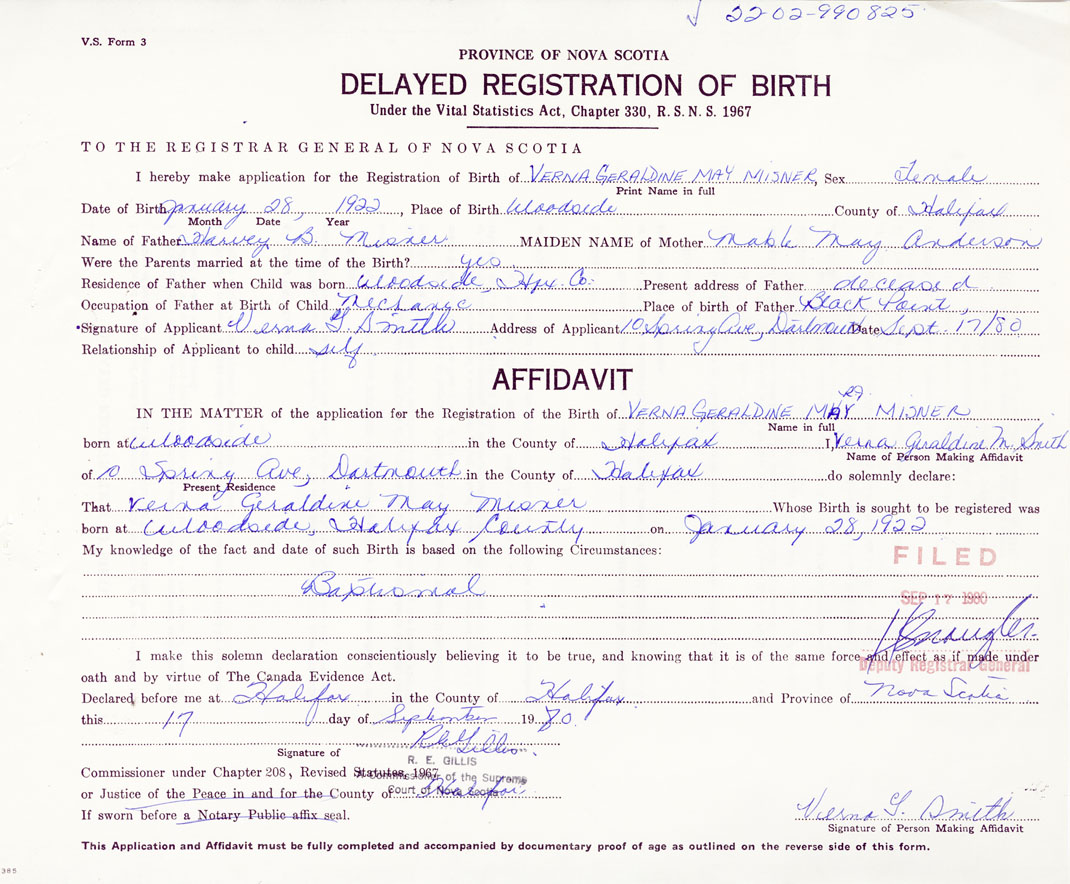 IN THE MATTER of the application for the Registration of the Birth of Verna Geraldine MayMisner