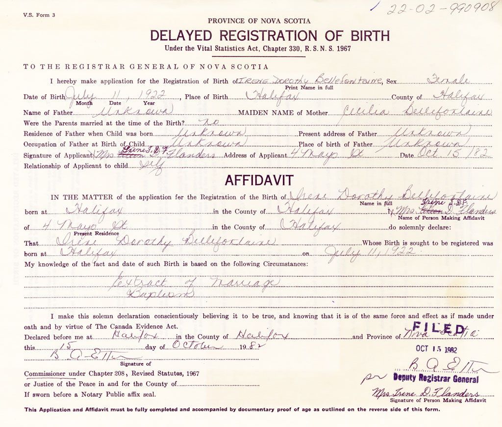 IN THE MATTER of the application for the Registration of the Birth of Irene DorothyBellefontaine