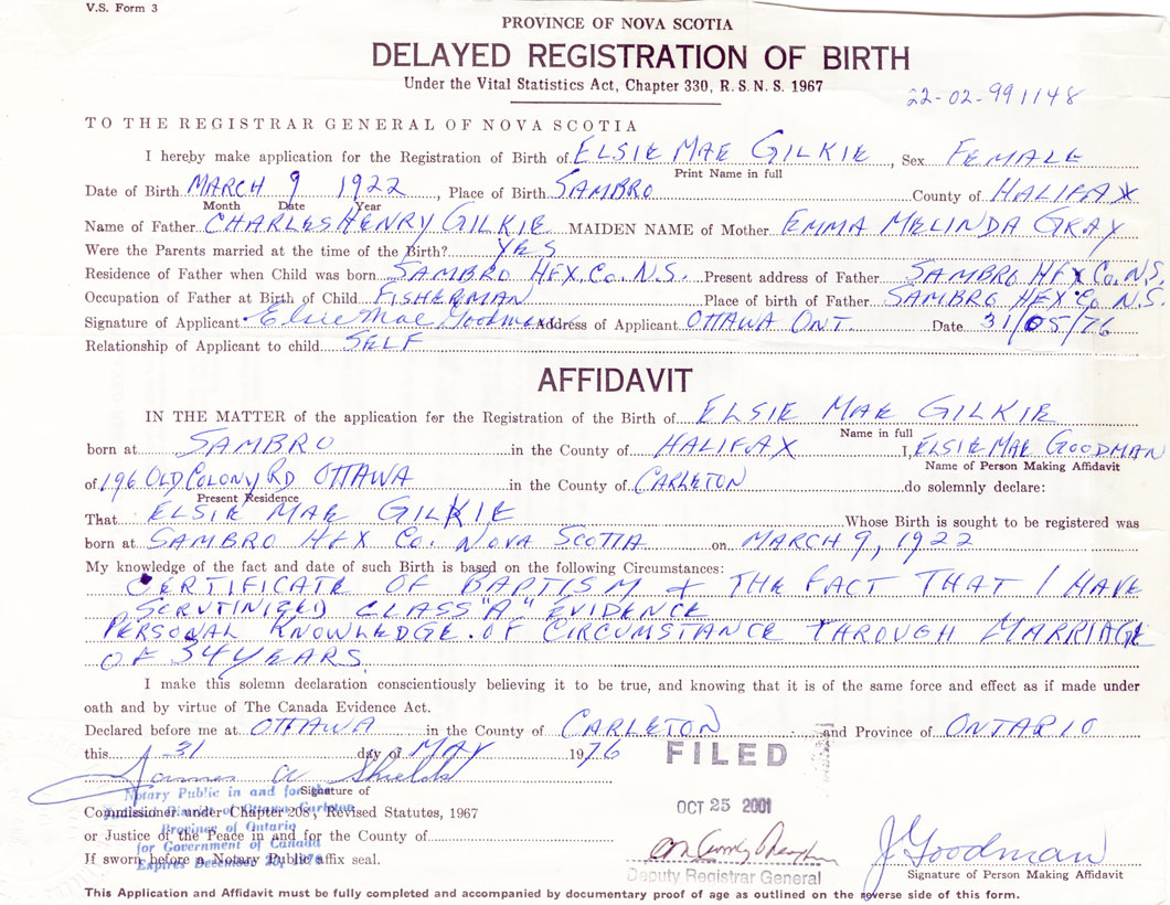 Signature of Applicant Elsie Mae Goodman Address of Applicant Ottawa, Ontario Date 31 May 1976