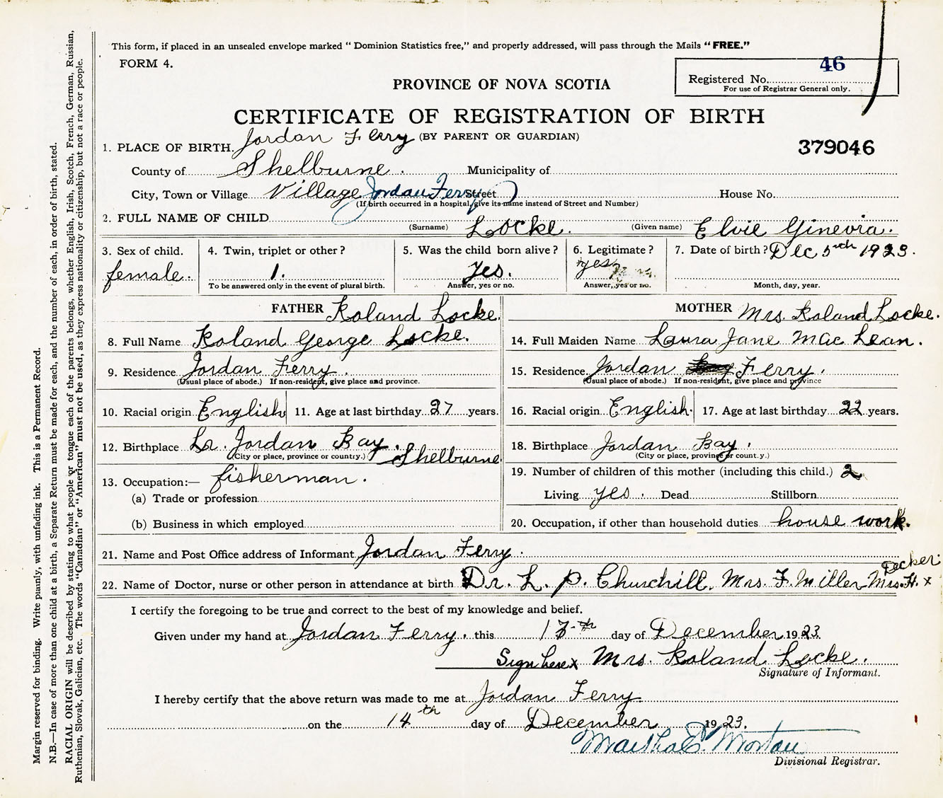 Female Birth Registration: Year: 1923 number: 37900046