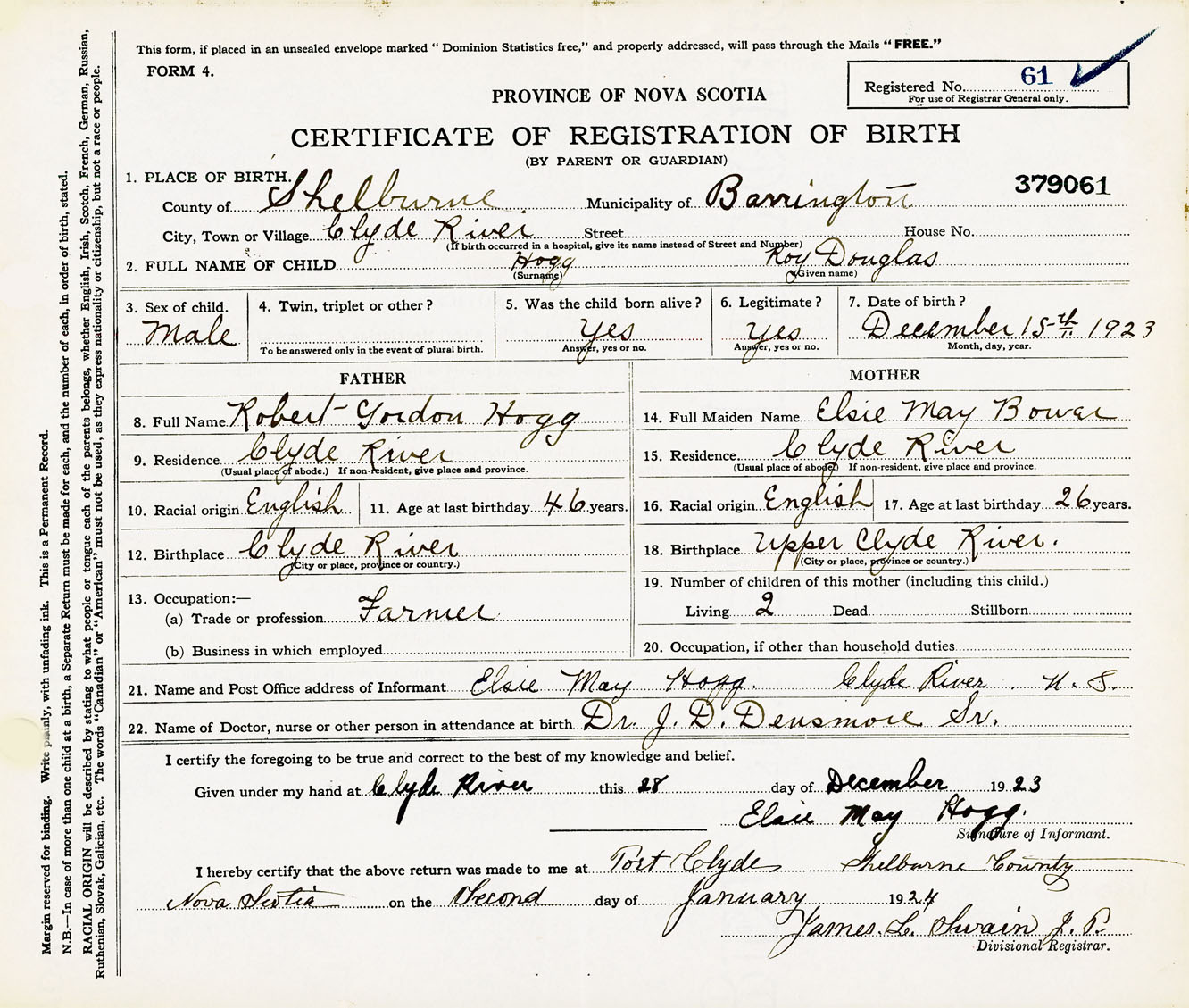Male Birth Registration: Year: 1923 number: 37900061