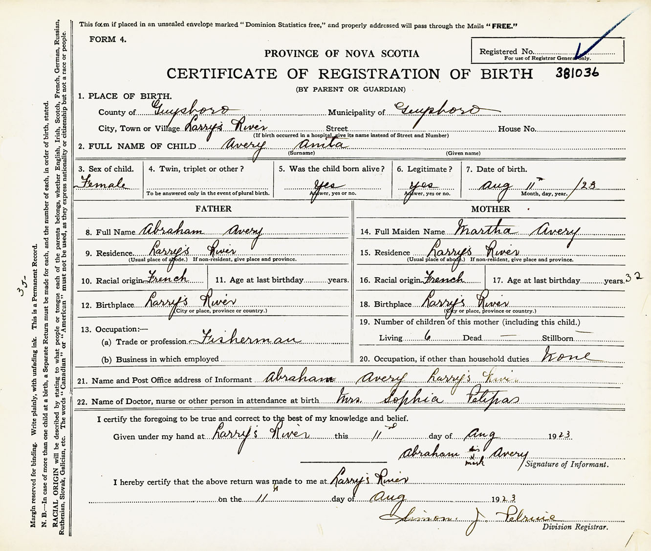 Nova Scotia Archives — https://archives.novascotia.ca/vital-statistics/birth/?ID=432515