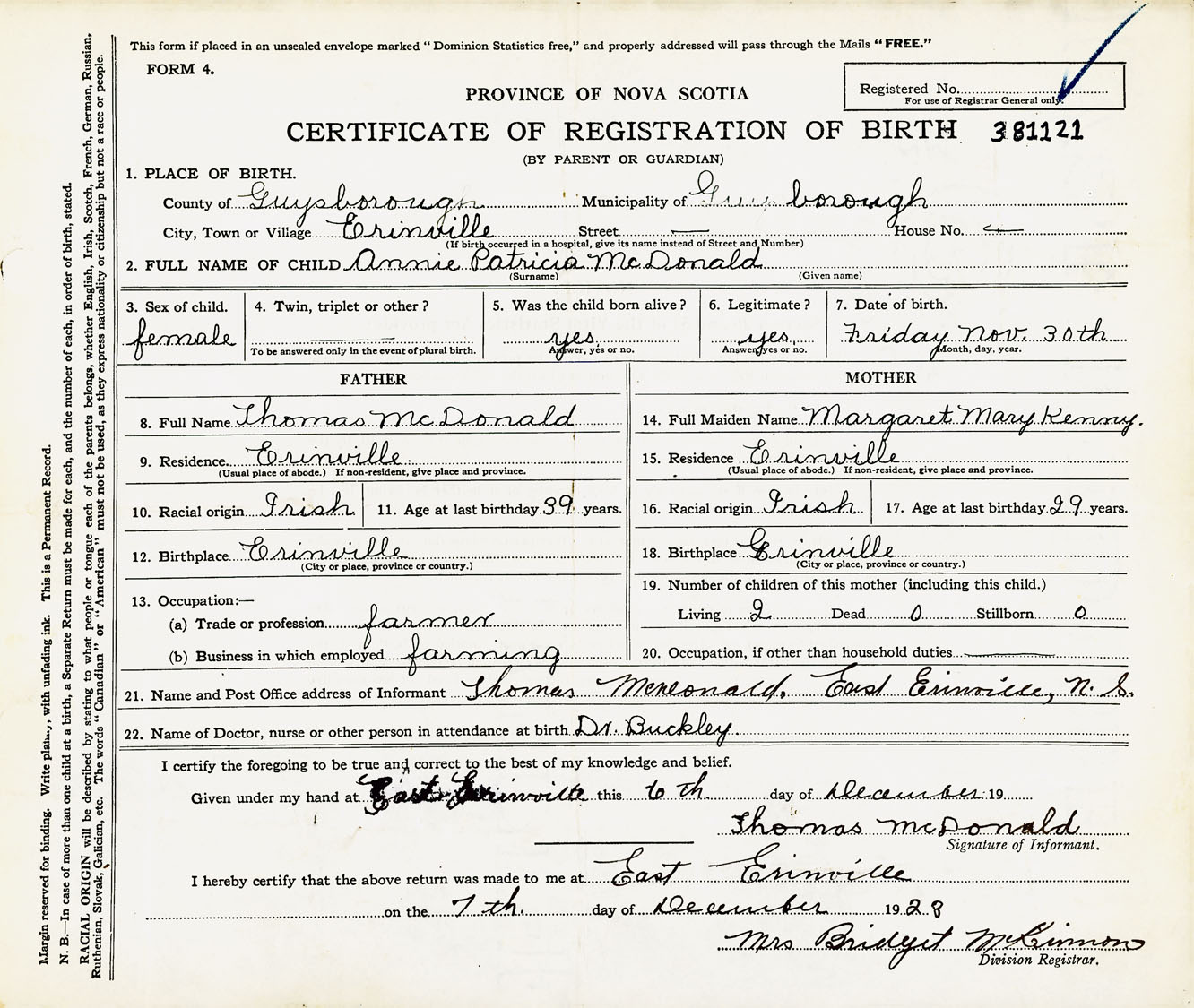 Nova Scotia Archives — https://archives.novascotia.ca/vital-statistics/birth/?ID=432600