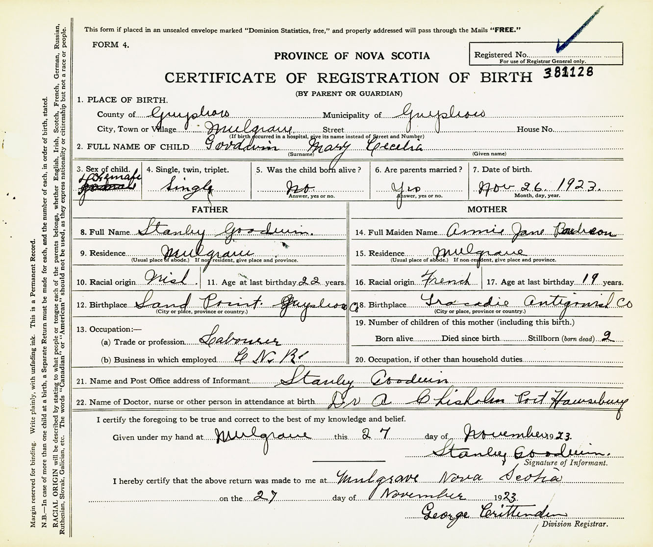 Nova Scotia Archives — https://archives.novascotia.ca/vital-statistics/birth/?ID=432607