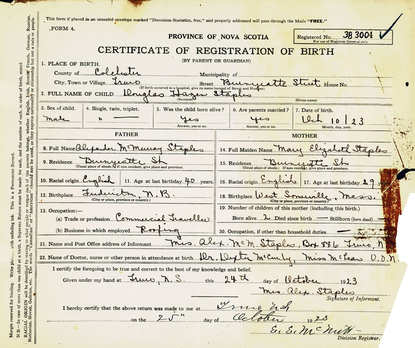 Male Birth Registration: Year: 1923 number: 38300004