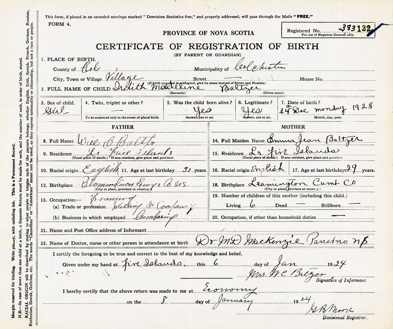 Female Birth Registration: Year: 1923 number: 38300122