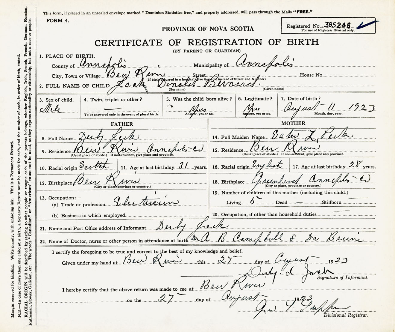 Male Birth Registration: Year: 1923 number: 38500246