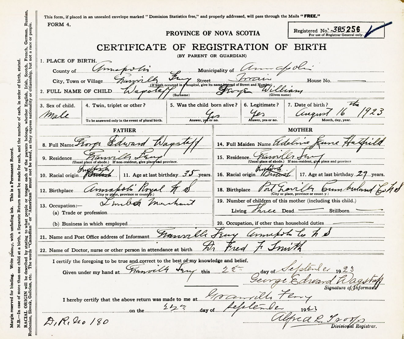 Male Birth Registration: Year: 1923 number: 38500256