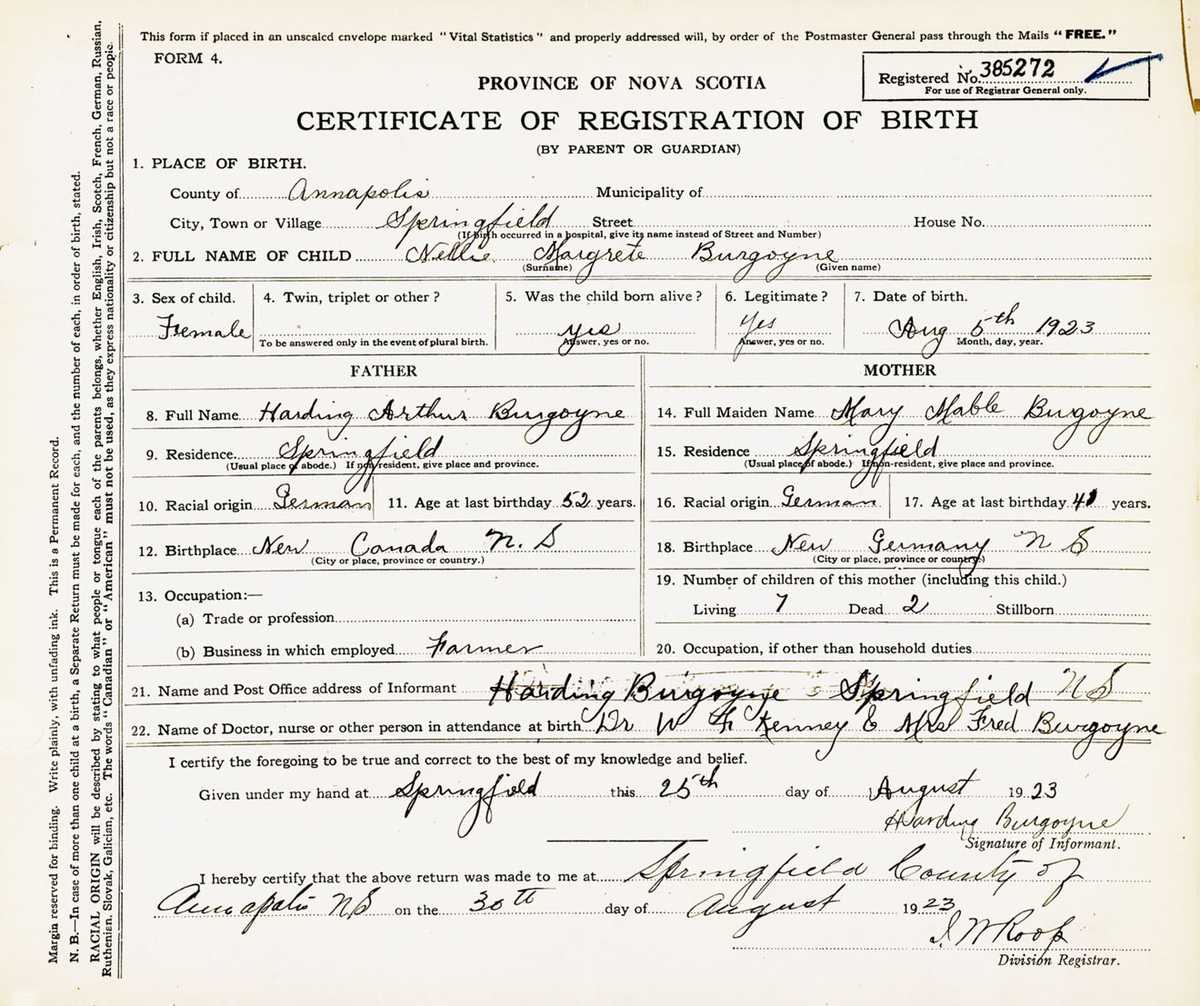 Female Birth Registration: Year: 1923 number: 38500272