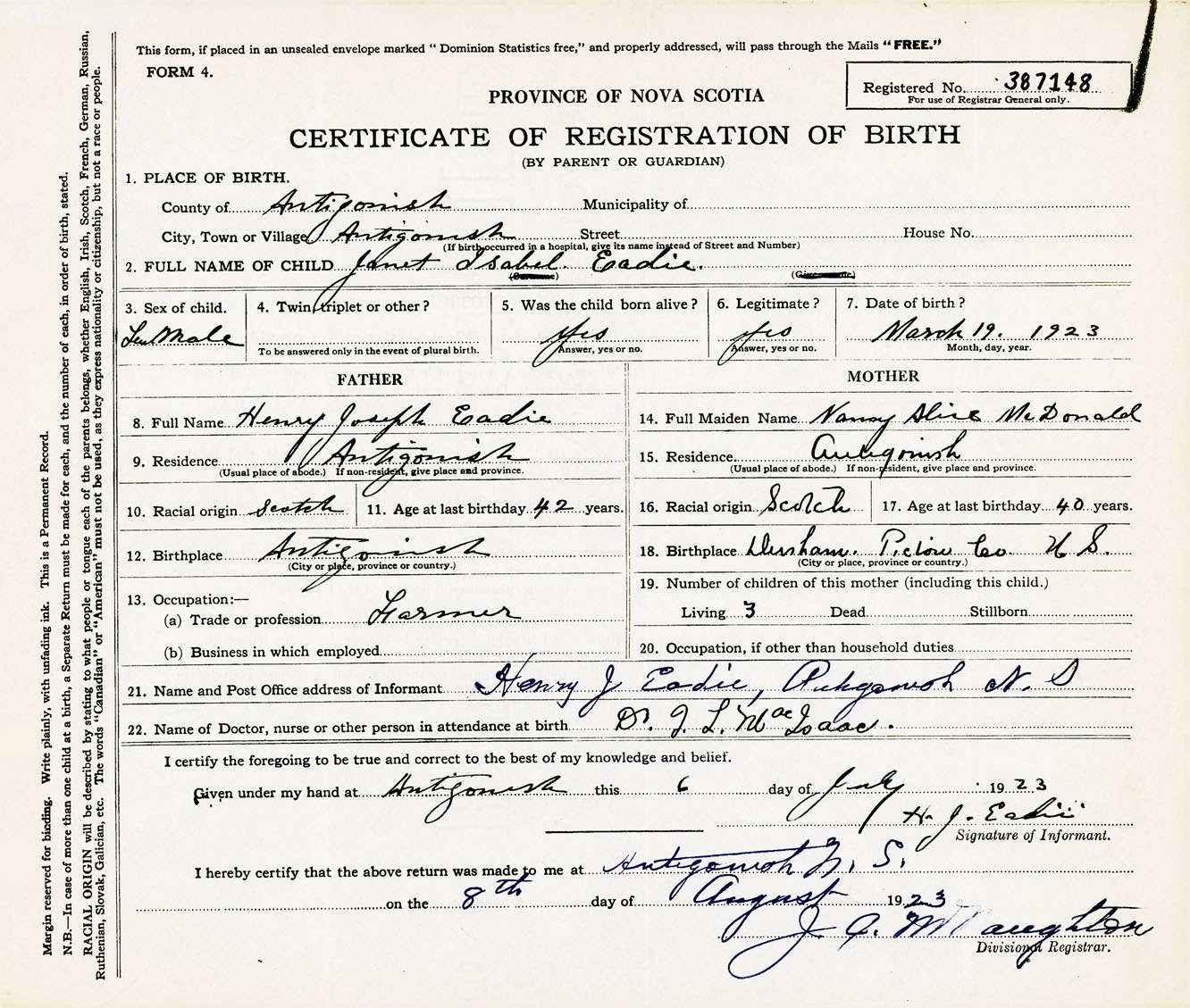 Nova Scotia Archives — https://archives.novascotia.ca/vital-statistics/birth/?ID=433181