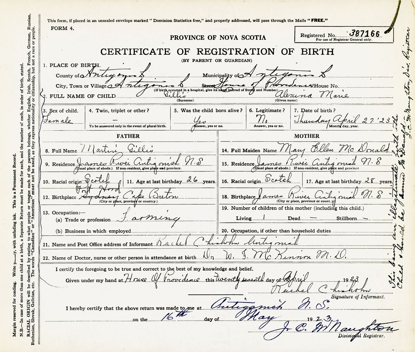 Nova Scotia Archives — https://archives.novascotia.ca/vital-statistics/birth/?ID=433199