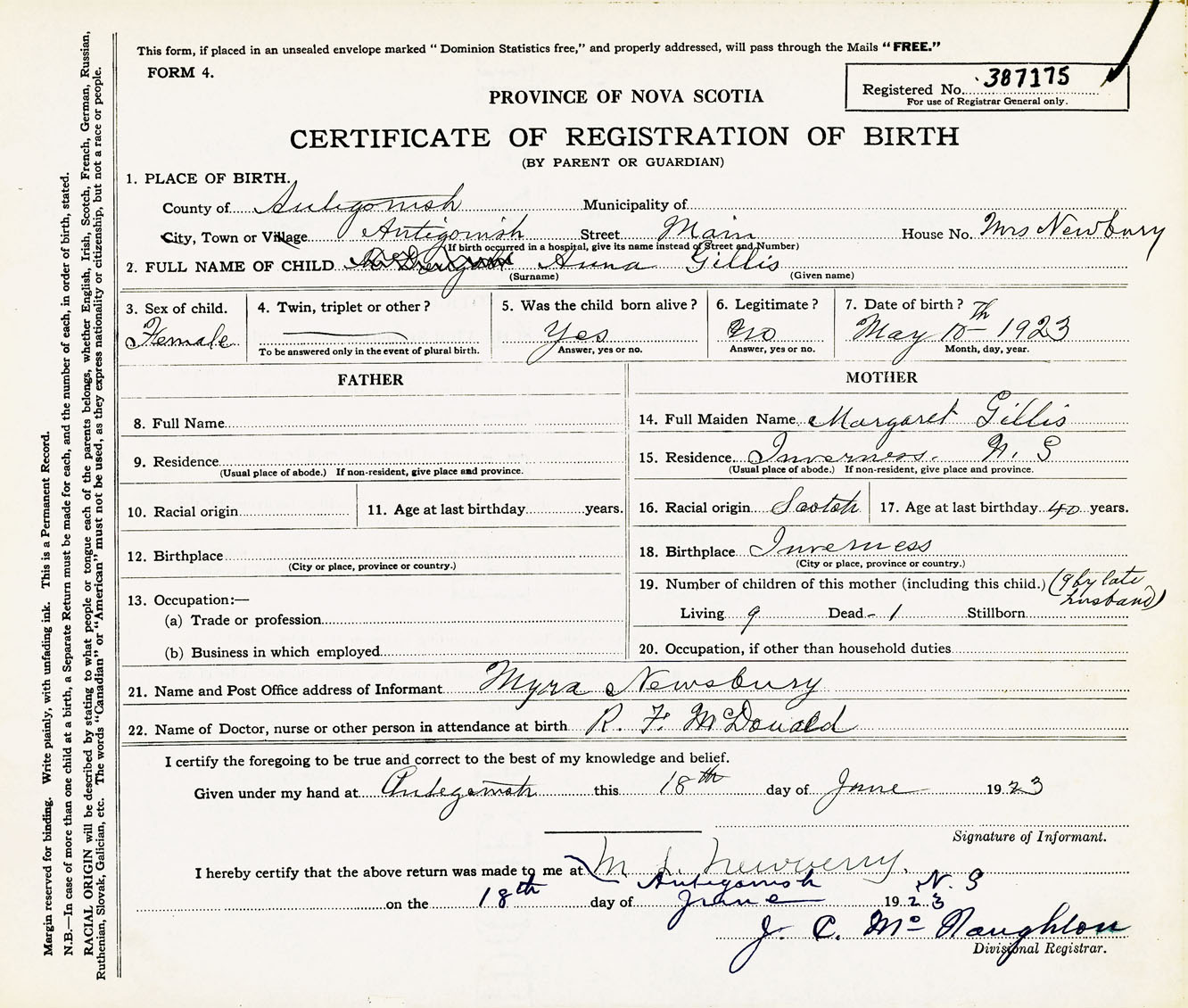 Nova Scotia Archives — https://archives.novascotia.ca/vital-statistics/birth/?ID=433207