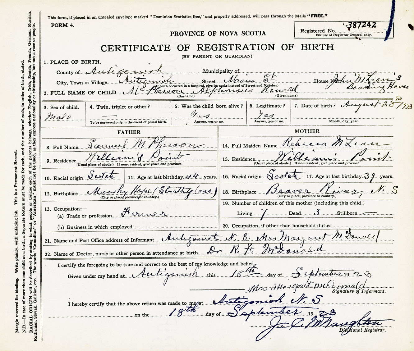 Male Birth Registration: Year: 1923 number: 38700242