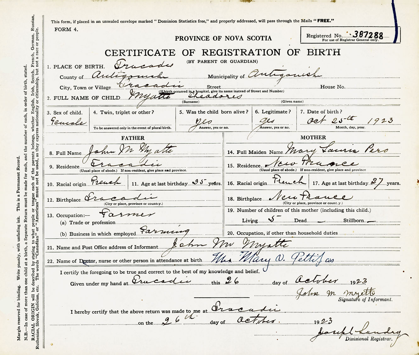 Female Birth Registration: Year: 1923 number: 38700288