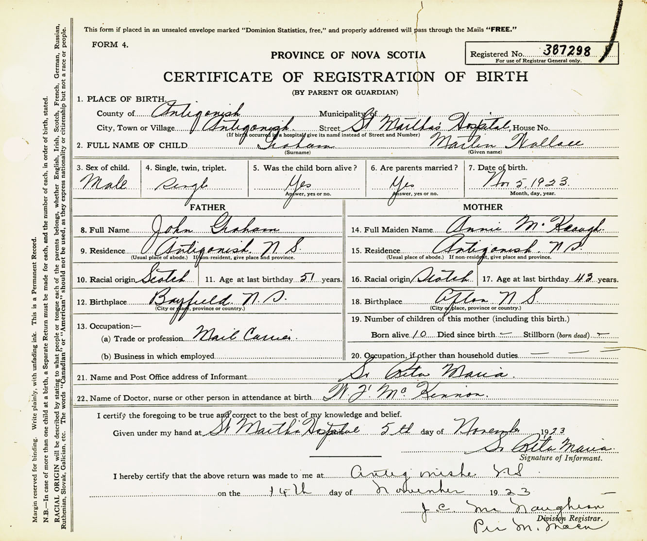 Male Birth Registration: Year: 1923 number: 38700298