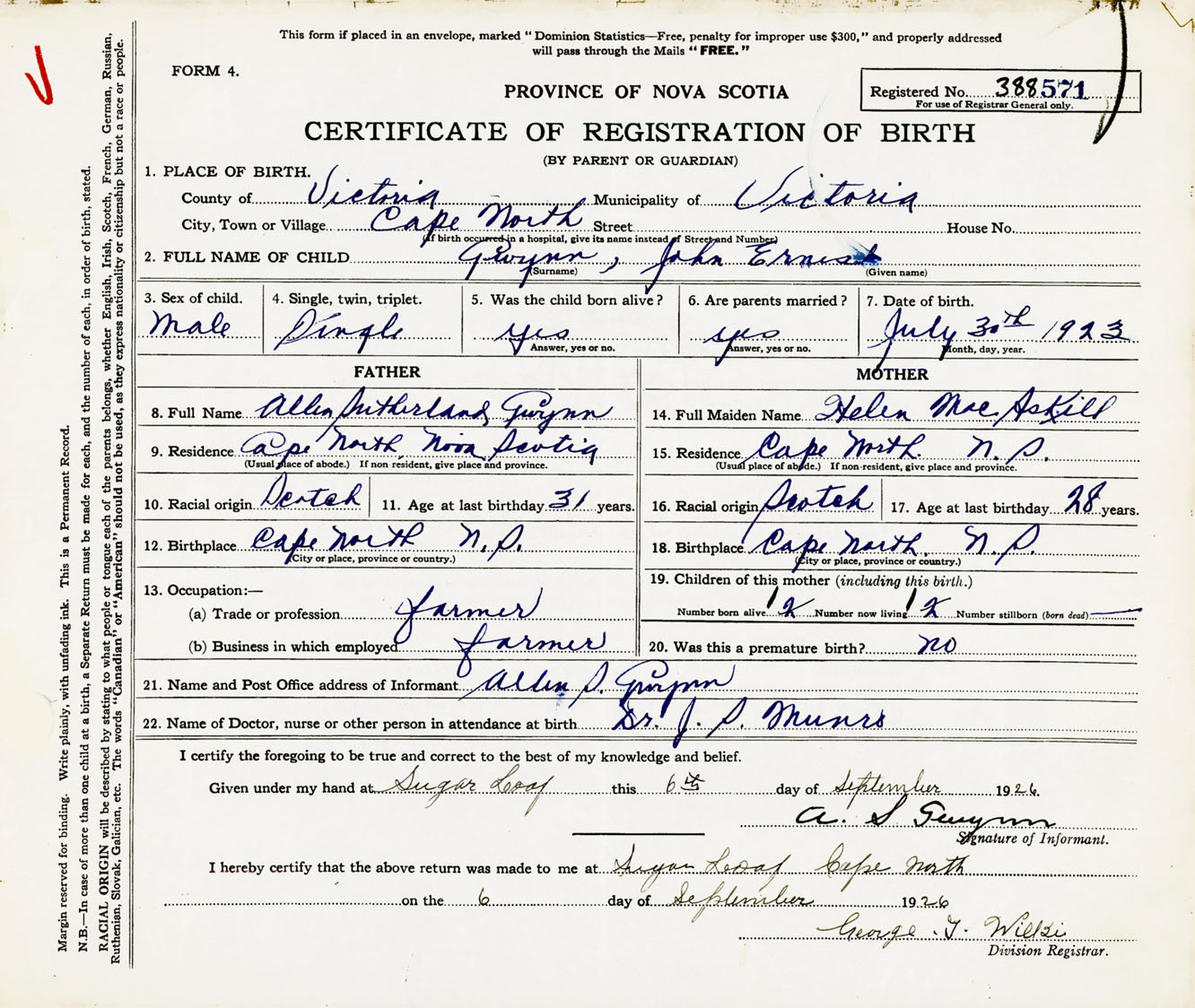Male Birth Registration: Year: 1923 number: 38800571