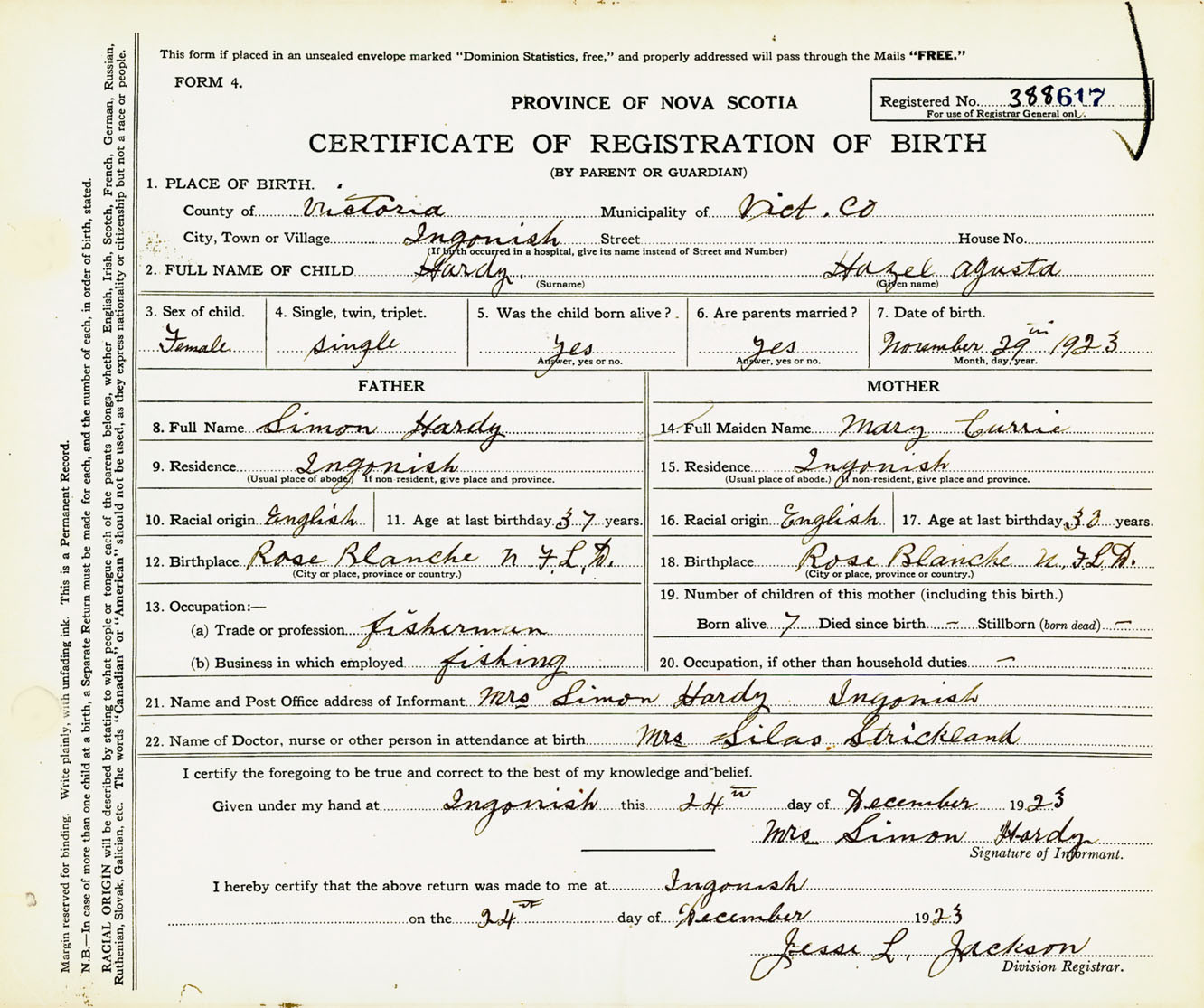 Female Birth Registration: Year: 1923 number: 38800617