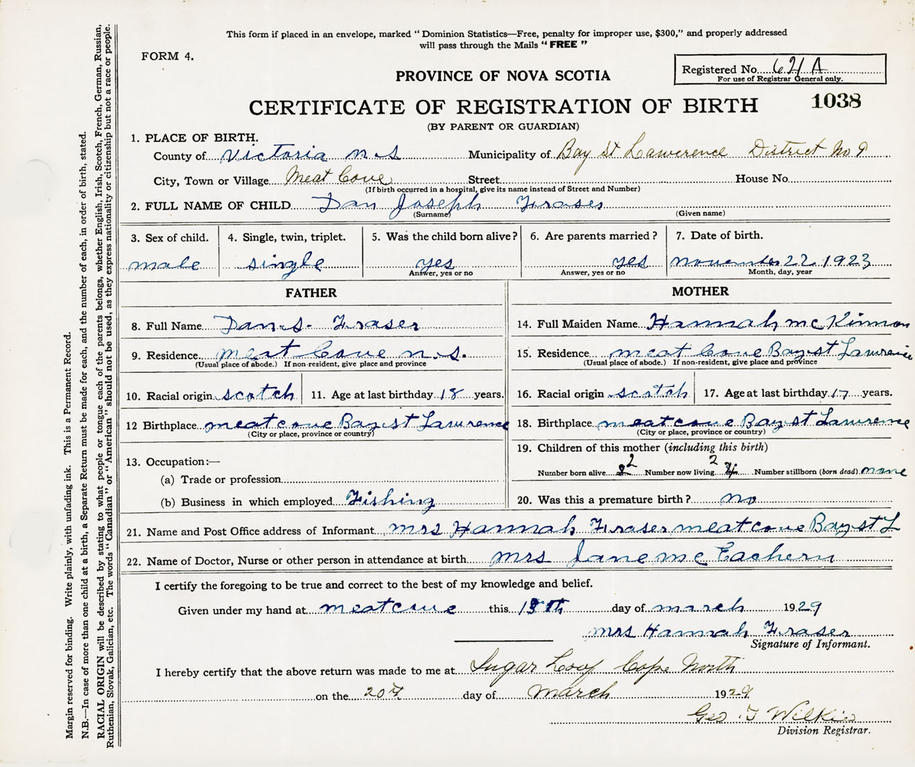 Male Birth Registration: Year: 1923 number: 38900038
