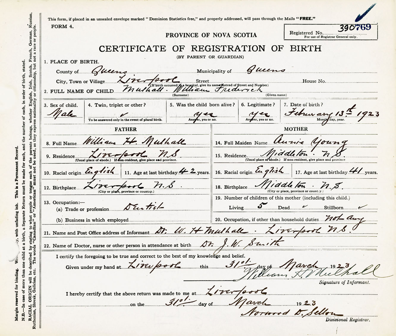 Male Birth Registration: Year: 1923 number: 39000769