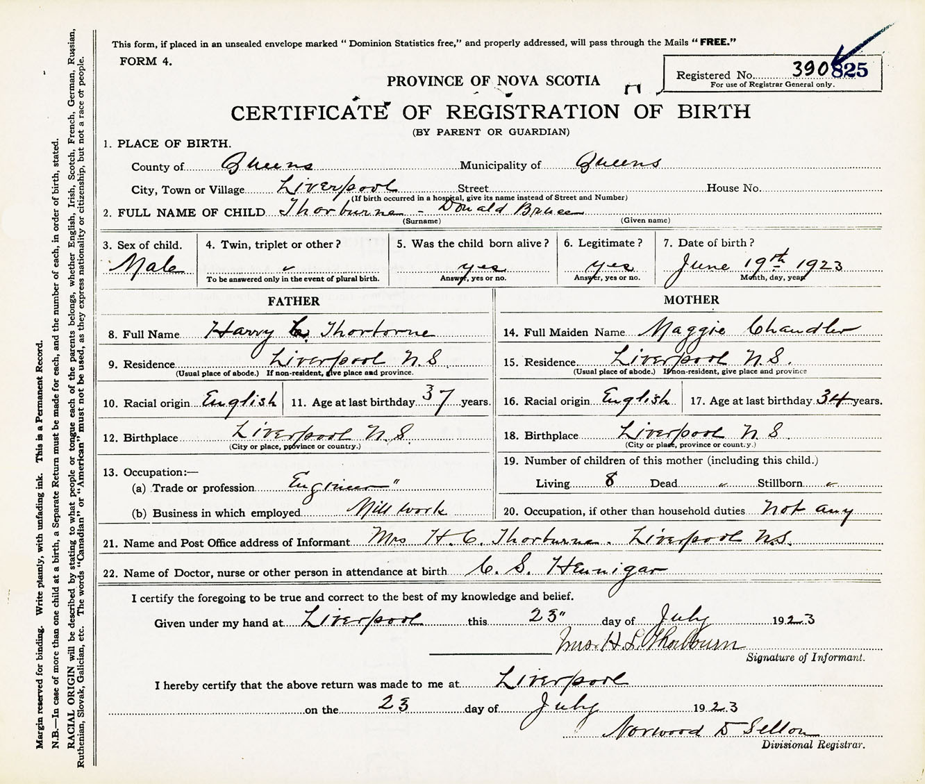 Male Birth Registration: Year: 1923 number: 39000825